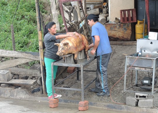 Am 8. August Rasttag in Cuenca. Ich nutze die Gelegenheit zu einem Radausflug, den ich auf 3.400m beende, nachdem es doch empfindlich kalt wurde. Ich teste so ein gegrilltes Schwein und kann nur sagen – schmeckt toll.