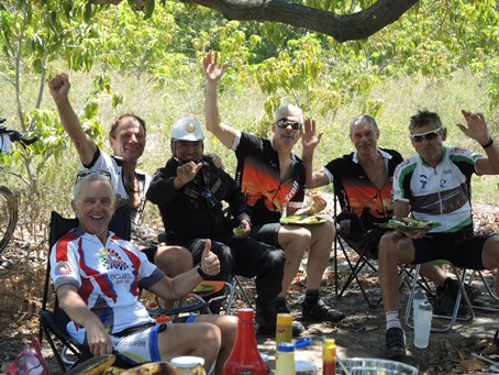 Ich bin wieder meiner täglichen Aufgabe nachgekommen, die Radler auf etwa halber Strecke mit Essen und Getränken zu versorgen. Falls eine/r nicht mehr kann, dann packe ich Rad und Reiter ein.