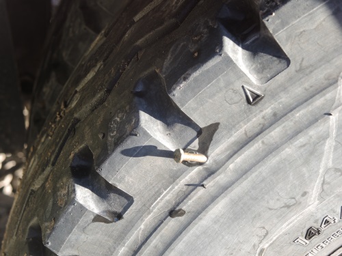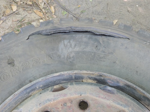 Übringens: Wieder Reifenwechsel. Mit einem lauten Knall hat sich ein Hinterreifen „verabschiedet“. Ein zehn Zentimeter langer Riss in der Seitenwand. Nun hat sich unser Bestand an Reservereifen schon von drei auf einen reduziert.