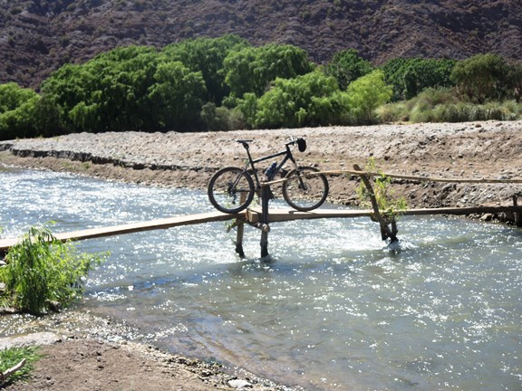 Am heutigen Rasttag habe ich wieder einen Berggipfel (ein 4.00er) bezwungen – mit dem Fahrrad. Es war dann eine schoene Abfahrt – je etwa ein Drittel Fels, Schotter, Sand.