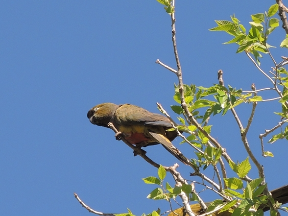 Da Rasttag, mache ich wieder einen Ausflug, diesmal zu Fuß. Erst Gebrüll im Baum. Eine Horde Papageien hat sich niedergelassen. Prächtig in den Farben.