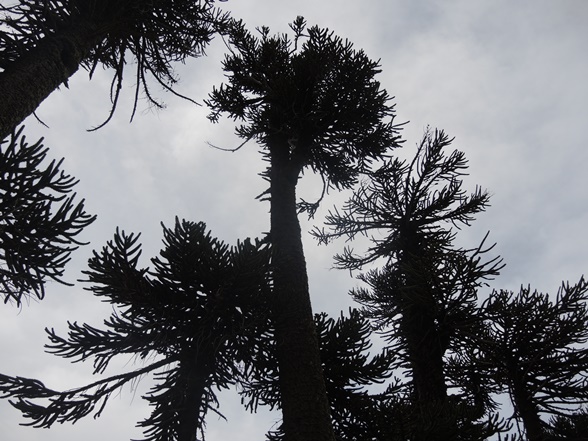 Rund 2.500km Argentinischer Wüste liegen hinter uns (mit wenigen Ausnahmen des Weinbaus in Cafayate und Mendoza). Heute dürfen wir von einem kleinen Bach aus starten aus Los Lachos. Nach rund 50km ändert sich die Landschaft schlagartig. Wir sehen bewaldetes Gebiet! Bewaldet mit Aurecarien, die hier im Grenzgebiet Chile-Argentinien wachsen. Uralte Bäume. Angeblich bis zu 2.000 Jahre alt. Mit Nadeln, die wie Blätter aus den Ästen ragen.