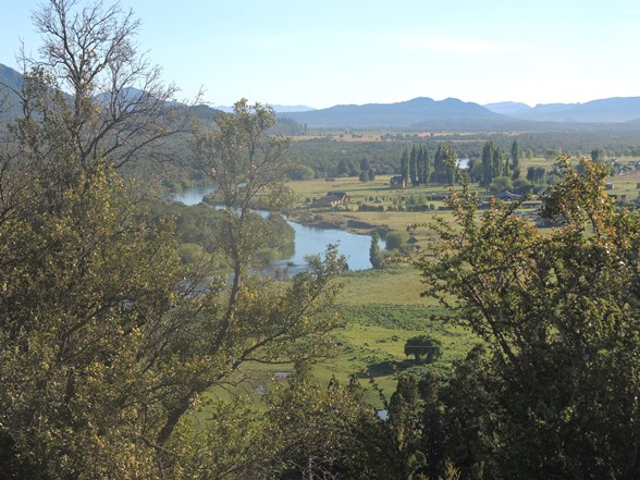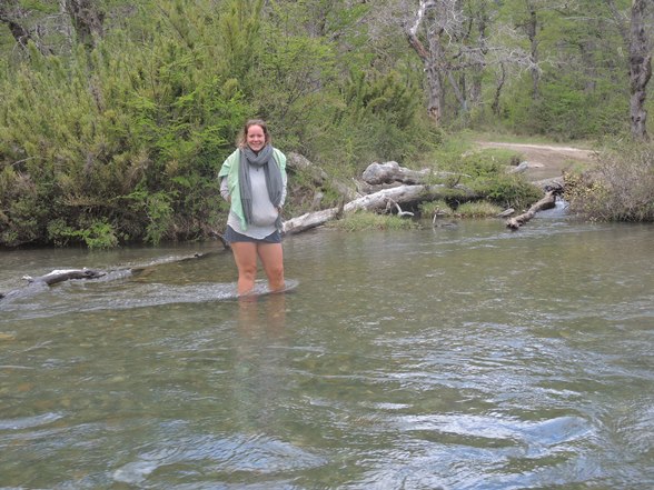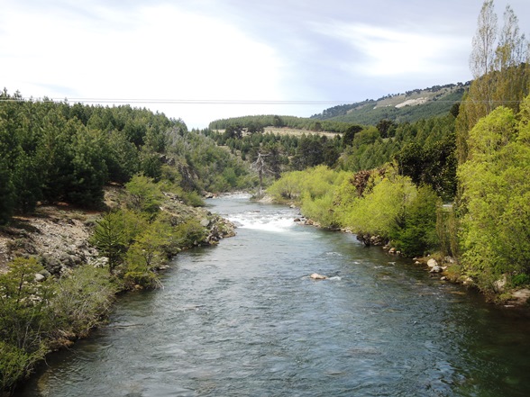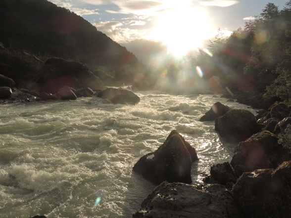 Am Abend lasse ich es mir nicht nehmen, unweit von Aluminé in den Fluss zu steigen und mich stromab treiben zu lassen – durchaus ein Wildbach mit mäßiger Temperatur (Schneeschmelze), aber ich genieße das Wasser und die Strömung.