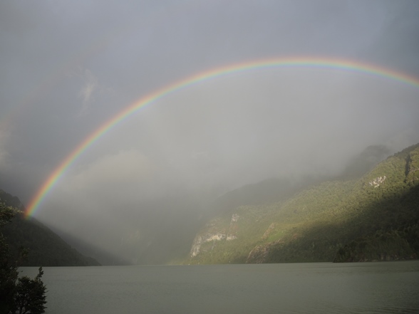 Wir folgen der Carretera Austral nach Süden durch unglaublich tolle Landschaften – Wälder, Seen, Wiesen, unglaubliche Wasserfälle und Bäche von der Größe eines Inn. An einem „See“ prangt ein Schild „Tsunami Gefahrengebiet“? Was soll das? An einem See? Getäuscht. Der „See“ entpuppte sich als das Ende eines langen Fjordes. Wir erreichen nach langer Zeit wieder den Pazifik.